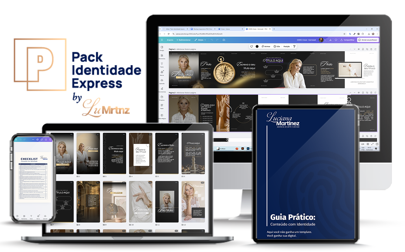 O segredo do Pack Identidade Express está no método Digital Code, que organiza sua identidade em 6 Códigos Visuais exclusivos: